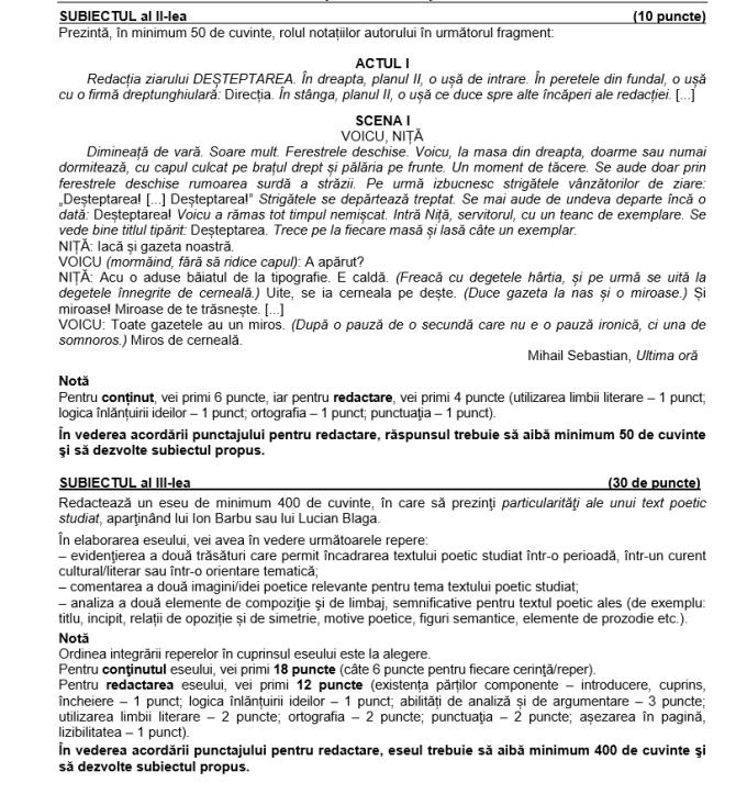 Simulare Bac 2018 RomanÄ Subiecte Èi Barem Real Èi Uman Clasele A Xi A Èi A Xii A La Simulare Bacalaureat 2018 Gandul Source from : https://www.gandul.ro/stiri/simulare-bac-2018-romana-subiecte-si-barem-real-si-uman-clasele-a-xi-a-si-a-xii-a-la-simulare-bacalaureat-2018-17068846 Simulare evaluare națională 2018 subiectele și baremul la limba română, anunțate de ministerul educației. Limba şi literatura romană (profilul umanistic). Barem de corectate comun pentru limbile străine. Barem romana la evaluarea naţională 2018, conform edu.ro. Update 15:10 subiectele și baremul de corectare bac 2018 la limba și literatura română au fost publicate pe edu.ro, dar și pe stirileprotv.ro.